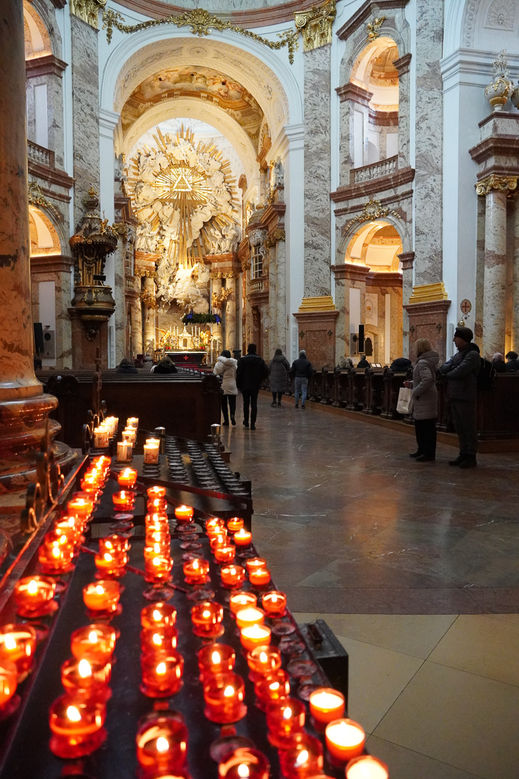 Ich bin schon wieder randvoll mit Eindrücken und erhole mich in der Karlskirche. Dann ziehe ich mir noch Hundertwasser im ihm gewidmeten Kunst Haus Wien rein. Dort werden auch Werke von Julius von Bismarck gezeigt, der sich filmisch und fotografisch mit dem Klimawandel auseinandergesetzt hat. Durchaus mit - typisch österreichisch? - beißendem Humor: ein Film zeigt ihn, wie er mit Peitsche meterhohe Brandung zähmen will und dabei selbst mitgerissen wird.