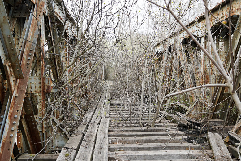 Na, wenigstens bleibt es trocken und nur aus Katerini raus nervt der Verkehr. Auf der Karte habe ich eine Abkürzung entdeckt, die alte Eisenbahnbrücke über den Aliakmonas. Kastige Stahlträgerkonstruktion. Vierhundert Meter lang. Teilweise von Feigenbäumen überwachen. Am Rand laufen drei parallel verlegte Bahnschwellen. Zu Fuß vielleicht möglich. Mir mit meinem Rad aber zu heikel. Ich breche meine Erkundung nach fünfzig Metern ab und balanciere. Ein kleines Stück weiter finde ich ein super Zeltplätzchen mit Blick auf Fluss, Auenwald und die Brücke. Ein sehr netter älterer Herr mit Krückstock kommt vorbei. Trotz kompletter Sprachbarriere ist etwas Austausch möglich. Er angelt gerne im Fluss, auf den wir zwischendurch schweigend schauen.