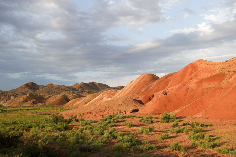 Vor Tuzluca steht Aziz plötzlich wieder vor mir. Er ist unterwegs nach Kars. Auch dorthin lädt er uns ein. Die letzten Kilometer, vorbei an "bunten Bergen" frischt der Wind gewaltig auf. Wir suchen uns einen windgeschützten Platz zwischen Bäumen.